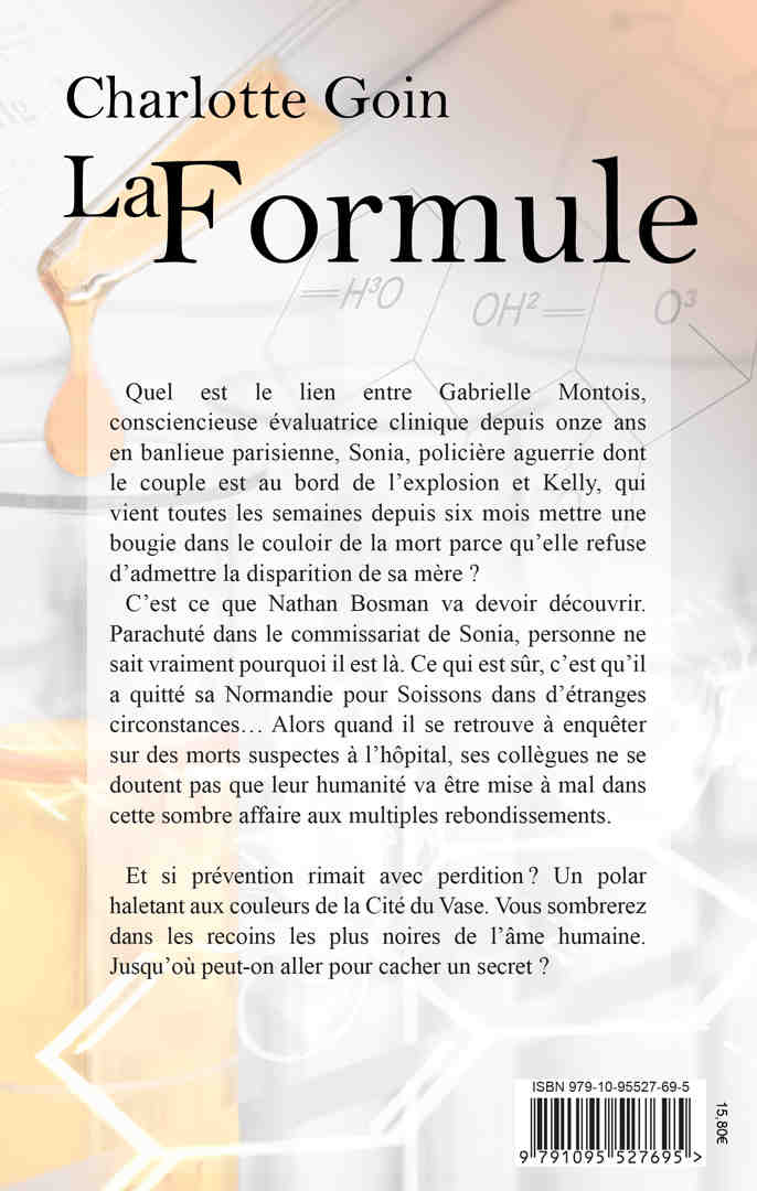 Quel est le lien entre Gabrielle Montois, consciencieuse évaluatrice clinique depuis onze ans en banlieue parisienne, Sonia, policière aguerrie dont le couple est au bord de l’explosion et Kelly, qui vient toutes les semaines depuis six mois mettre une bougie dans le couloir de la mort parce qu’elle refuse d’admettre la disparition de sa mère ? C’est ce que Nathan Bosman va devoir découvrir. Parachuté dans le commissariat de Sonia, personne ne sait vraiment pourquoi il est là. Ce qui est sûr, c’est qu’il a quitté sa Normandie pour Soissons dans d’étranges circonstances… Alors quand il se retrouve à enquêter sur des morts suspectes à l’hôpital, ses collègues ne se doutent pas que leur humanité va être mise à mal dans cette sombre affaire aux multiples rebondissements. Et si prévention rimait avec perdition ? Un polar haletant aux couleurs de la Cité du Vase. Vous sombrerez dans les recoins les plus noires de l’âme humaine. Jusqu’où peut-on aller pour cacher un secret ?